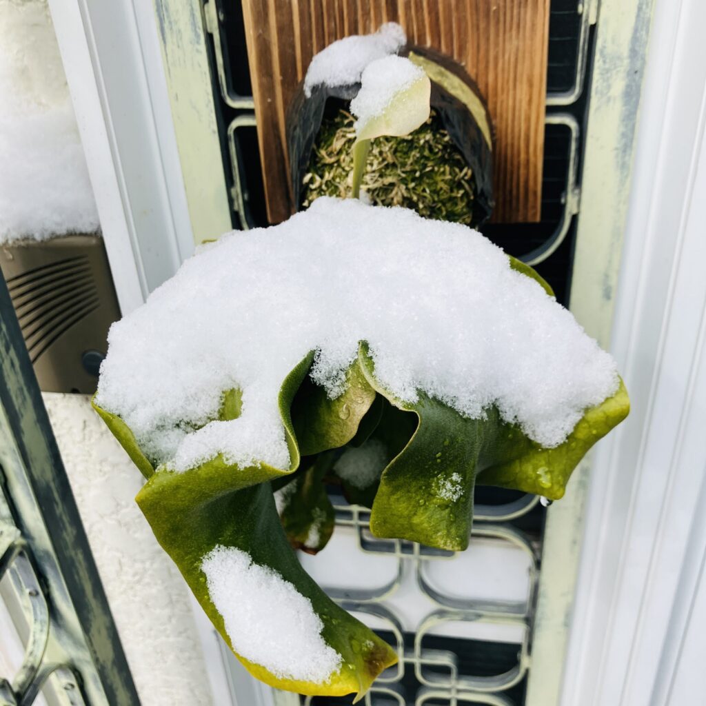 雪が積もってかわいそうなビカクシダさんを見て